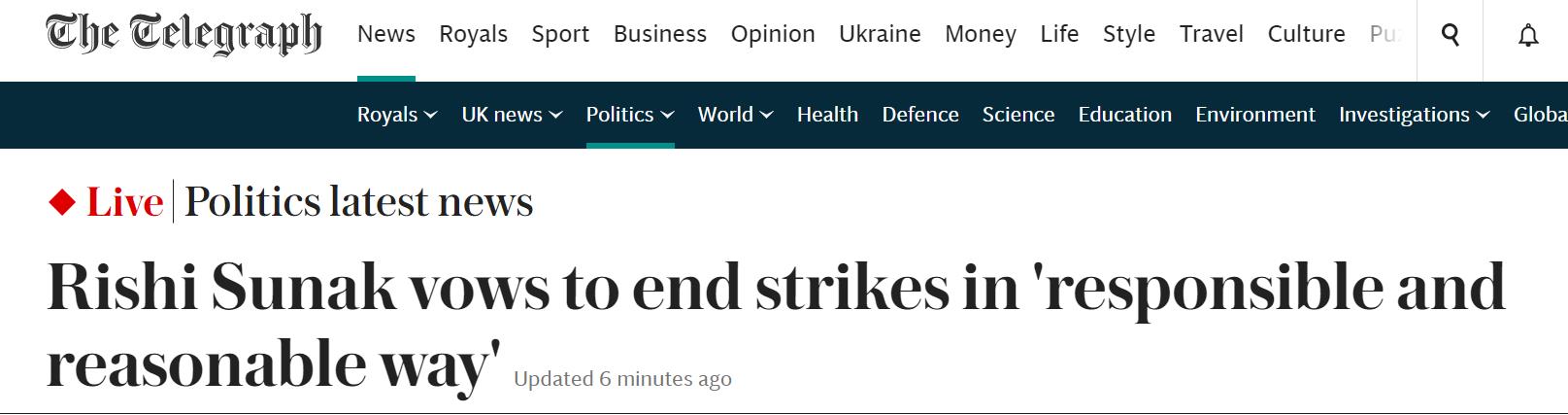 - 英国首相里希·苏纳克誓言解决罢工危机,同时,政府各部门部长与工会负责人举行了关键会谈…