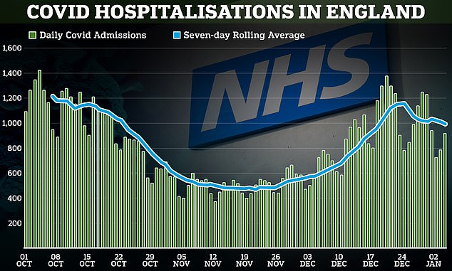 在截至 1 月 2 日的一周内,英格兰各地医院平均有 995 名新冠 Covid 患者入院。这些数据表明,平均而言,因新冠而住院的病患人数在圣诞节之前达到了顶峰,此后一直是下降趋势。