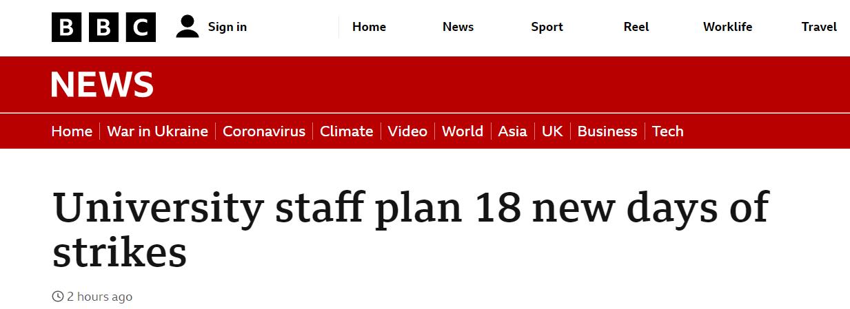 英国大学和学院联盟(the University and College Union,UCU)宣布,今年2月和3月,英国150所大学的教职工计划举行18次新的罢工。