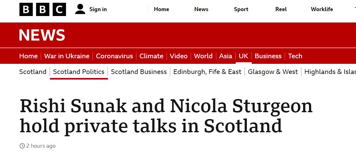 - 英国首相里希·苏纳克进行了上任以来对苏格兰的首次出访,并与苏格兰首席大臣尼古拉·斯特金进行私人会谈…