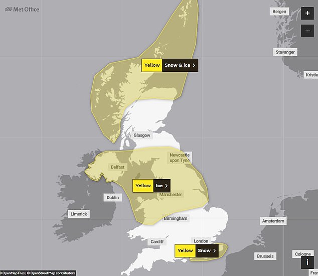 今天早上,北爱尔兰、威尔士和英格兰北部部分地区结冰,预计伦敦夜间气温将降至零下2摄氏度,卡迪夫气温将降至零下1摄氏度,爱丁堡和贝尔法斯特气温将降至零下3摄氏度,而苏格兰高地的部分地区气温将降至零下10摄氏度。