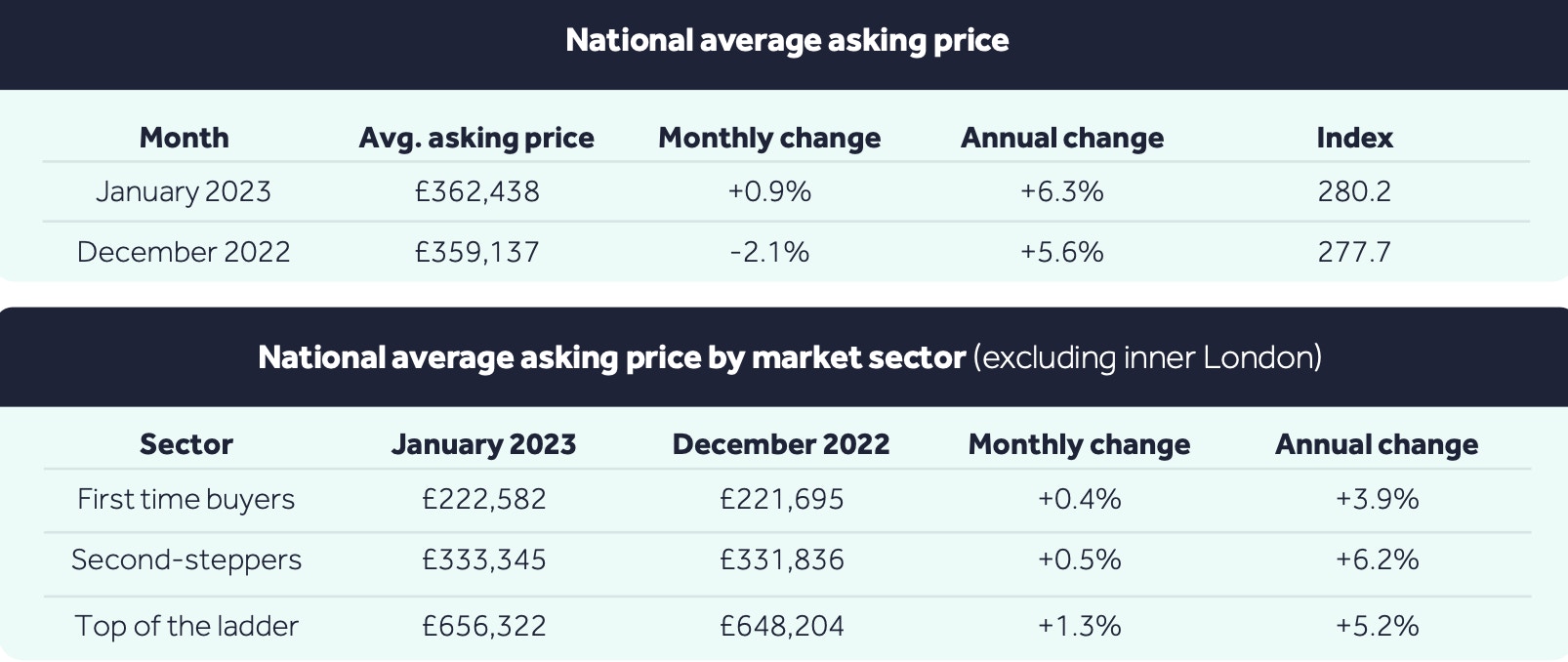 Rightmove的数据显示:今年1月,较去年12月来说,房价月涨幅0.9%(+ 3,301英镑至362,438英镑),这是自2020年以来这个时期的最大涨幅。