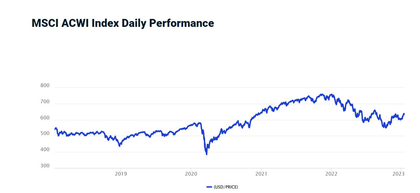 从衡量股市的摩根士丹利资本国际公司的MSCI全球指数来看,目前,由于全球通胀等因素影响,该指数出现了一定的下滑,但仍远高于疫情前水平。