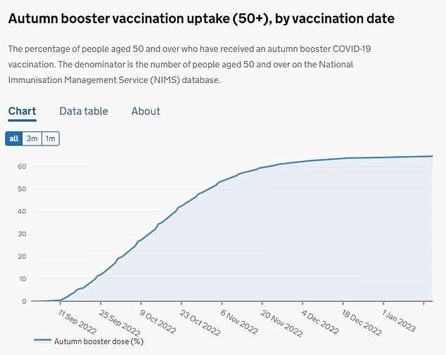 64.5%的50岁以上的人群已经在今年年初之前接种了从去年秋冬季开始接种的新冠加强针。82.4%的75岁以上人群接种了加强针。