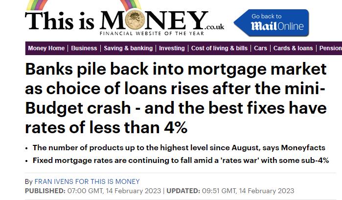根据Moneyfacts的最新数据,自去年8月以来,房产市场上的抵押贷款产品数量首次超过4,000种,达到了4,341种,高于1月份的3,643种,买家的选择正在进一步增加。
