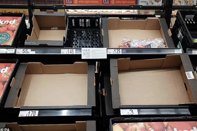 据报道,由于新鲜农产品供应短缺,英国两大连超Asda和Morrisons开始限制一些水果和蔬菜的销售。