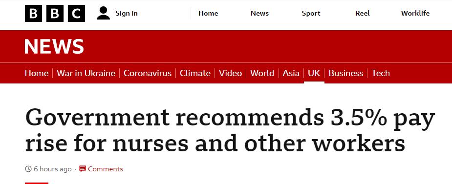 - 政府计划为法官、警察、教师、护士、医生等公共部门员工加薪3.5%,并称更高加薪幅度或加剧通胀…