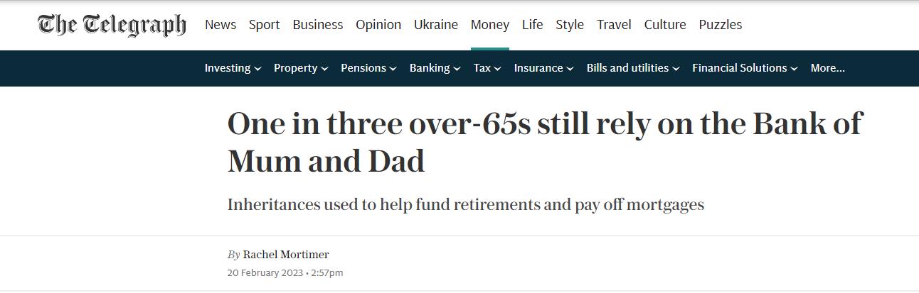 根据Zoopla的分析,在65岁及以上的人群中,近三分之一依靠父母的经济支持,即所谓的“父母银行(Bank of Mum and Dad )”,来资助退休生活或偿还抵押贷款。