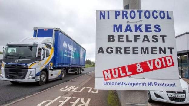 “北爱尔兰议定书”是英国“脱欧”协议的一部分。根据协议,北爱尔兰地区留在欧洲单一市场与欧盟关税同盟内,以防止爱尔兰岛内出现陆上“硬边界”。不过,从英国大不列颠岛进入北爱地区的部分商品需要接受海关和边境安全检查。