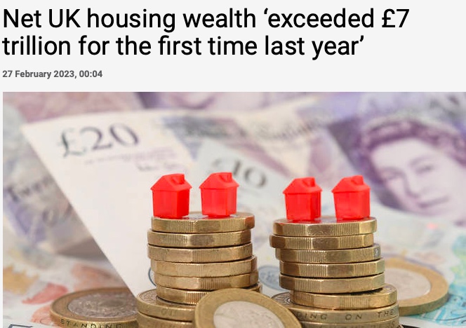 Savills数据显示:英国房地产净财富“去年首次超过7万亿英镑”。到2022年底,英国房屋总价值达到8.68万亿英镑。