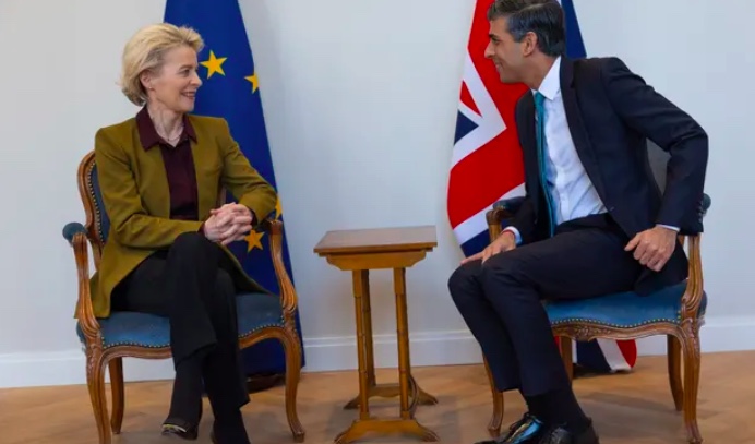 苏纳克重新签订北爱协议的事获得了保守党内一些议员的支持,并在今天与欧盟委员会主席冯德莱恩举行会谈,并签署新的协议。