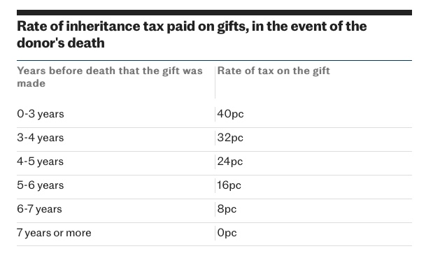 也就是说,如果死者赠予的礼物是在死亡之前3年之内的,会被按照40%那样征收遗产税。如果是在死亡之前7年以上赠予出去的钱财,那就无需缴纳遗产税。