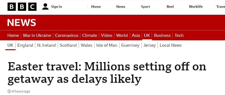 - 英国运输公司发出警告称,由于复活节外出人数众多,今年的交通预计会出现延误…