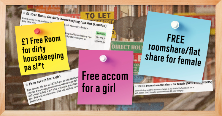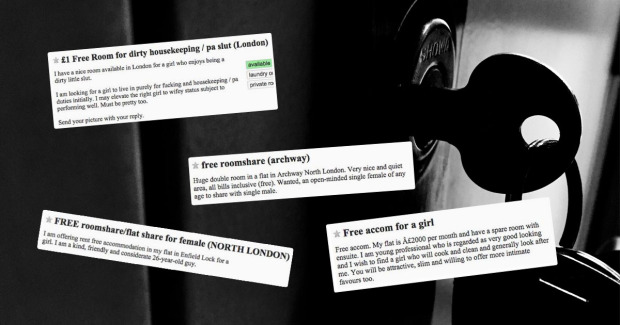 “伦敦空房出租:免费出租给热情奔放的坏女孩,随时可以搬进来。房间可以用来massage…也可以住。”