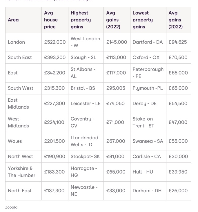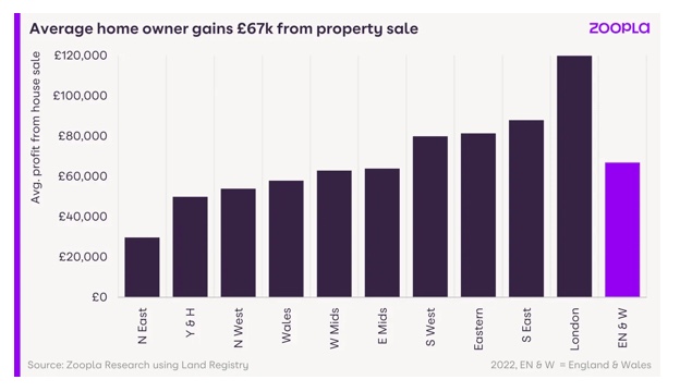 Zoopla的数据显示:2022年,英国97%的卖家从出售房产中获利,平均每套房屋的收入为6.7万英镑。