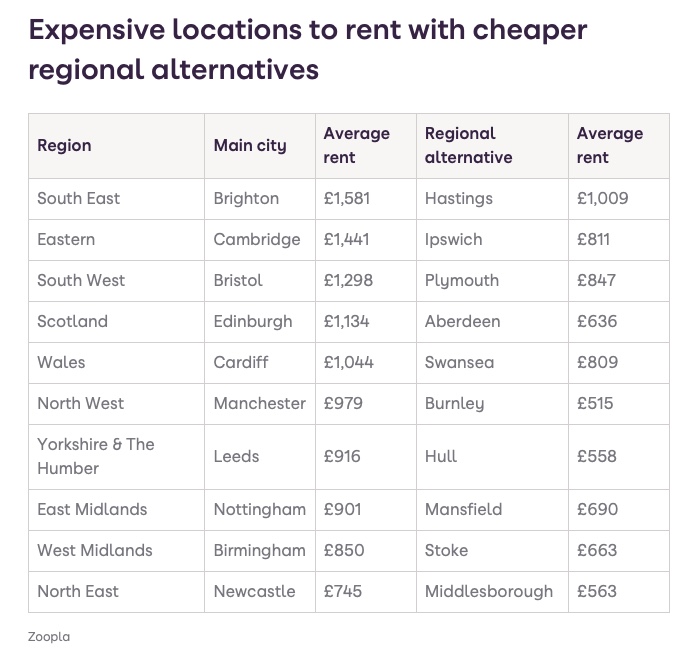 在英格兰南部,平均租金都在1,000英镑以上。2020年6月解封以来,租金持续上涨。