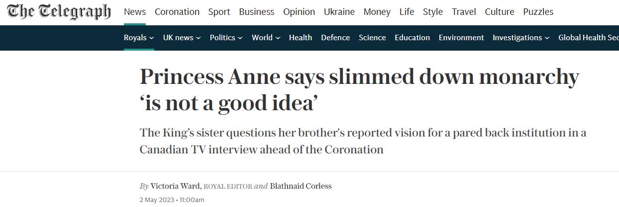 - 英国王室成员安妮公主维护君主制,并称“精简君主制”不是一个“好主意”…