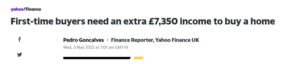 - 英国首次购房者买房难度再次增大,需要额外的7,350英镑收入才能踏上住房阶梯…