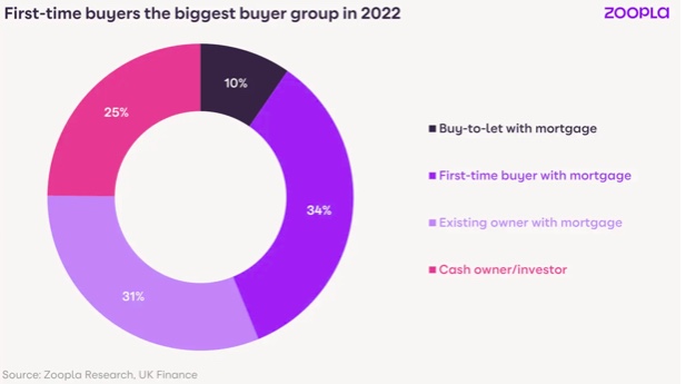 去年使用抵押贷款的首次购房者占销售的三分之一以上(34%)。这使他们成为最大的购房者群体,其次是使用抵押贷款的现有房主(31%)和现金购房者(25%)。