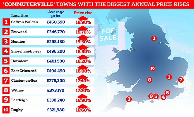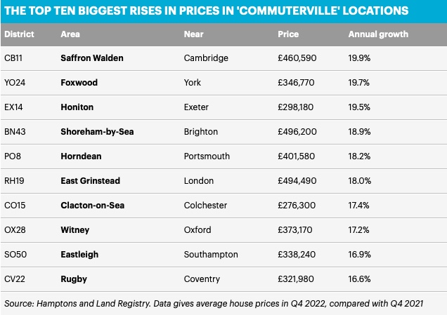这也推动了通勤区房价的上涨。涨幅最大的地区如下所示: