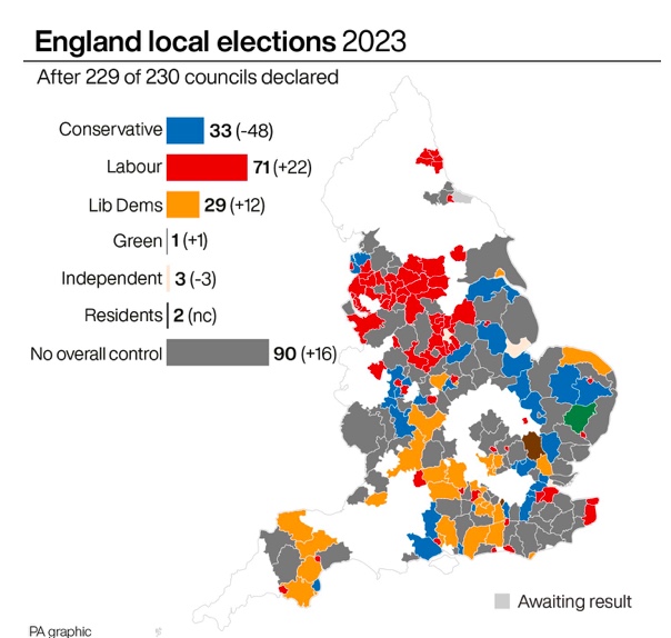 - 地方选举工党和自由民主党获得数百个席位,保守党痛失1,060个席位!苏纳克直言:令人失望!