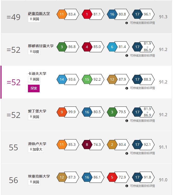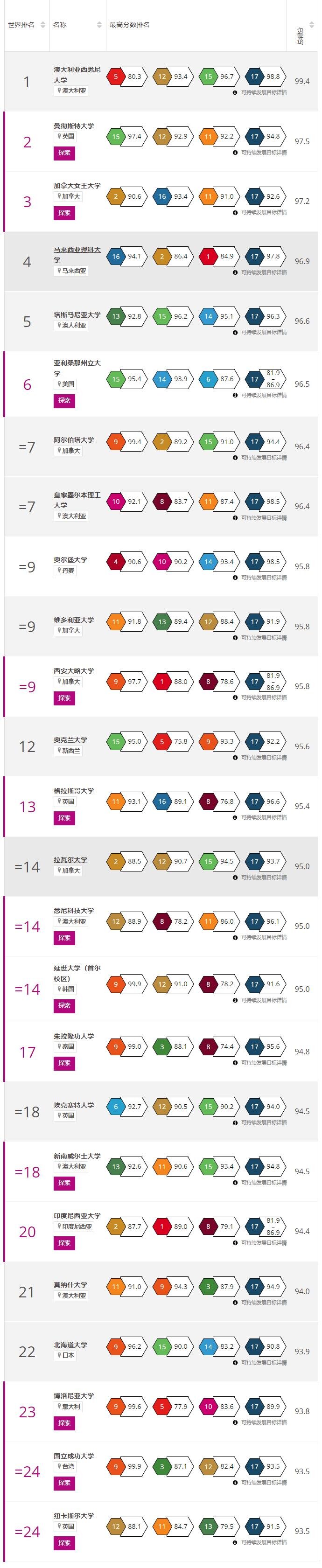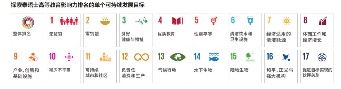 该排名由泰晤士高等教育发布,是全球唯一一个基于联合国可持续发展目标(Sustainable Development Goals,简称SDGs)来评估全球大学的排名,具体指标如下。