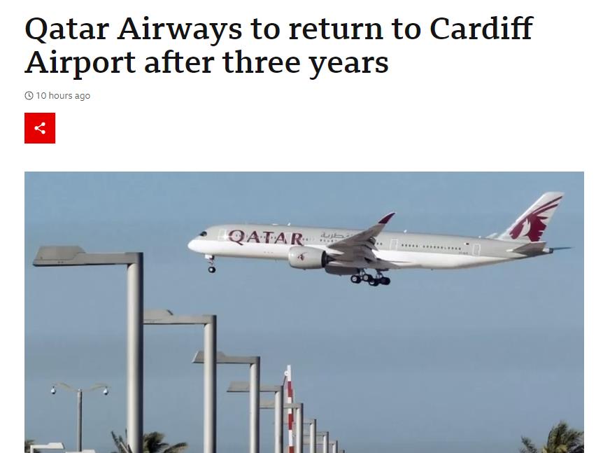 威尔士政府表示:“我们欢迎从加的夫恢复多哈航线。”