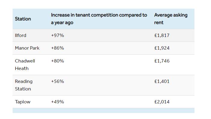 而由于需求暴增,租户之间的竞争也变得更加激烈,在伦敦东部的Ilford,租户之间的租房竞争在一年内几乎翻了一番 (+97%),而在Manor Park和Chadwell Heath车站附近,也出现了前所未有的租赁竞购战。