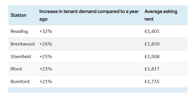 根据Rightmove的最新研究,由于伦敦租金暴涨,该线路在过去一年中租户需求增幅最大的车站均是距离市中心较远的一些车站,分别是Reading(+32%), Brentwood (+26%) ,Shenfield (+25%)。