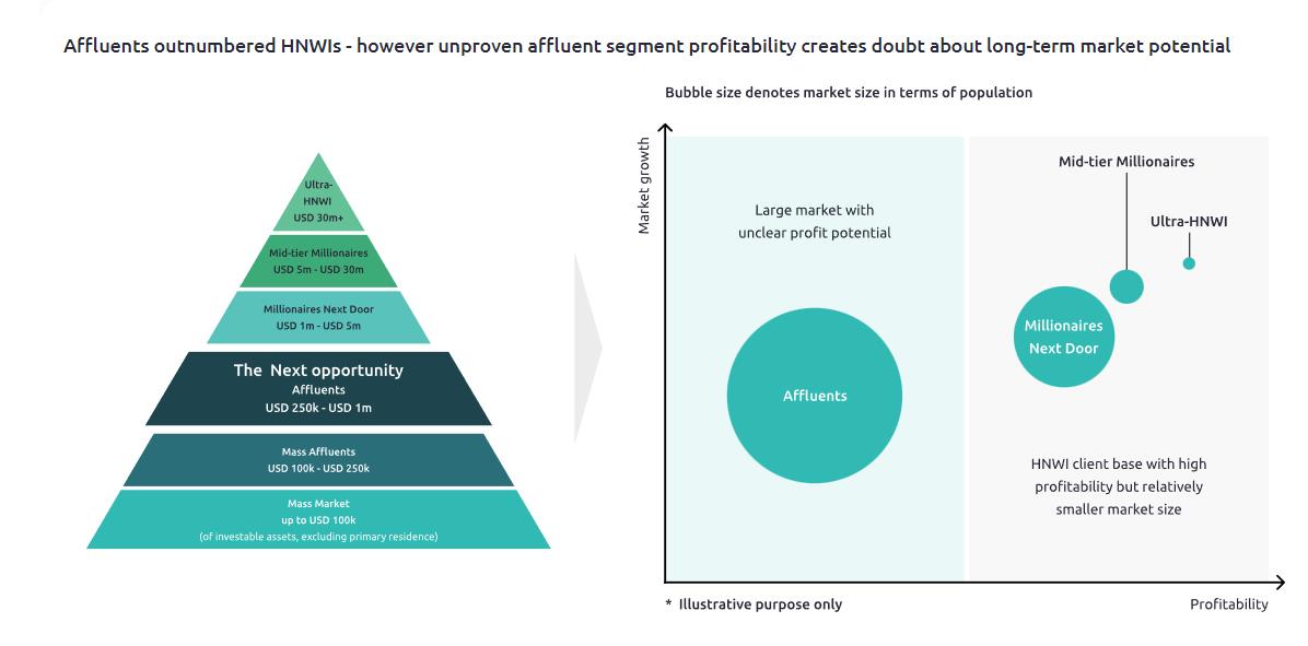 高净值人士(HNWI)则指的是可投资资产超过100万美元的人群,不包括主要住所、收藏品、消耗品、耐用消费品。