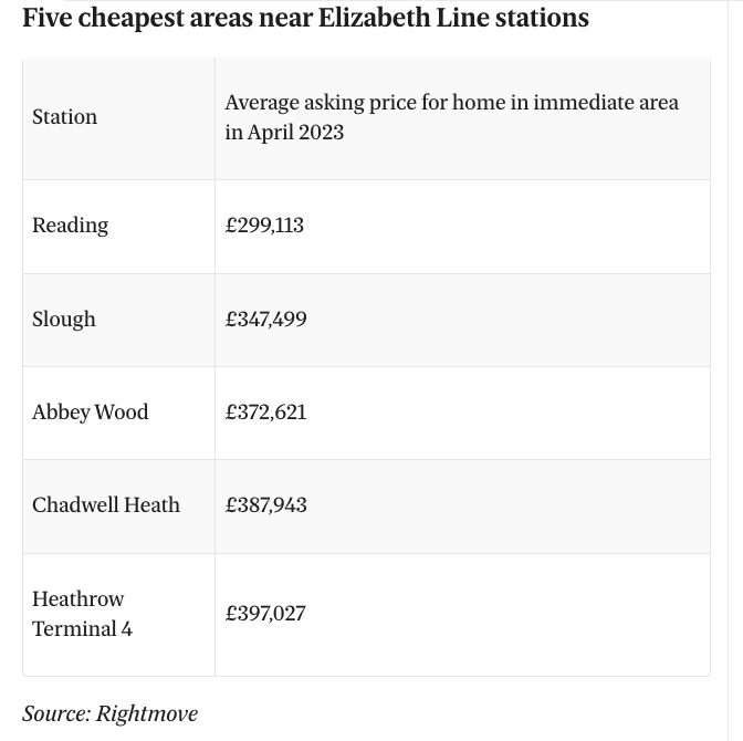 Rightmove的数据显示,伦敦的平均要价目前为696,477英镑,而横贯铁路的雷丁站,目前是这条线路上房价最便宜的地区,均价299,1113英镑。