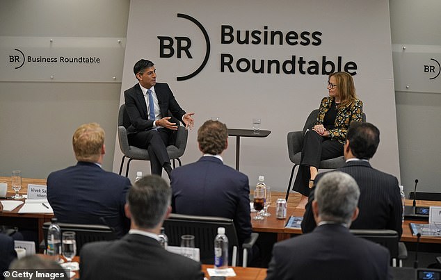 为了吸引美国企业对英国的投资,苏纳克还在华盛顿参加了大型公司CEO的聚会上发表了讲话。
