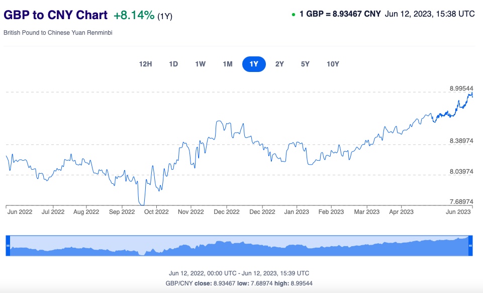 兑换人民币汇率为1 GBP = 8.93467 CNY。