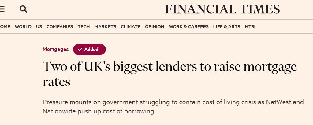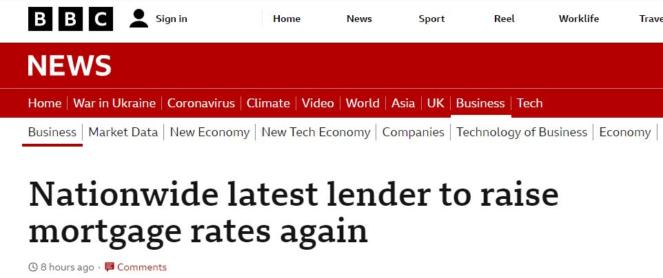 报道称,在本周五,Nationwide将把抵押贷款利率最高上调0.7个百分点,该机构也成为最新一家再次上调抵押贷款利率的银行。