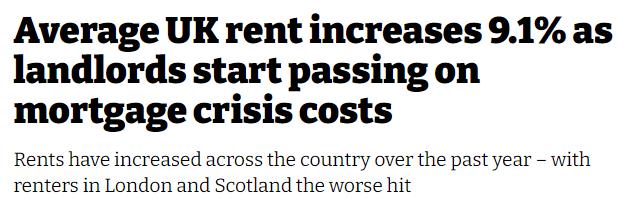 - 由于房东试图转嫁抵押贷款利率上涨带来的成本,英国各地的租金持续上涨…