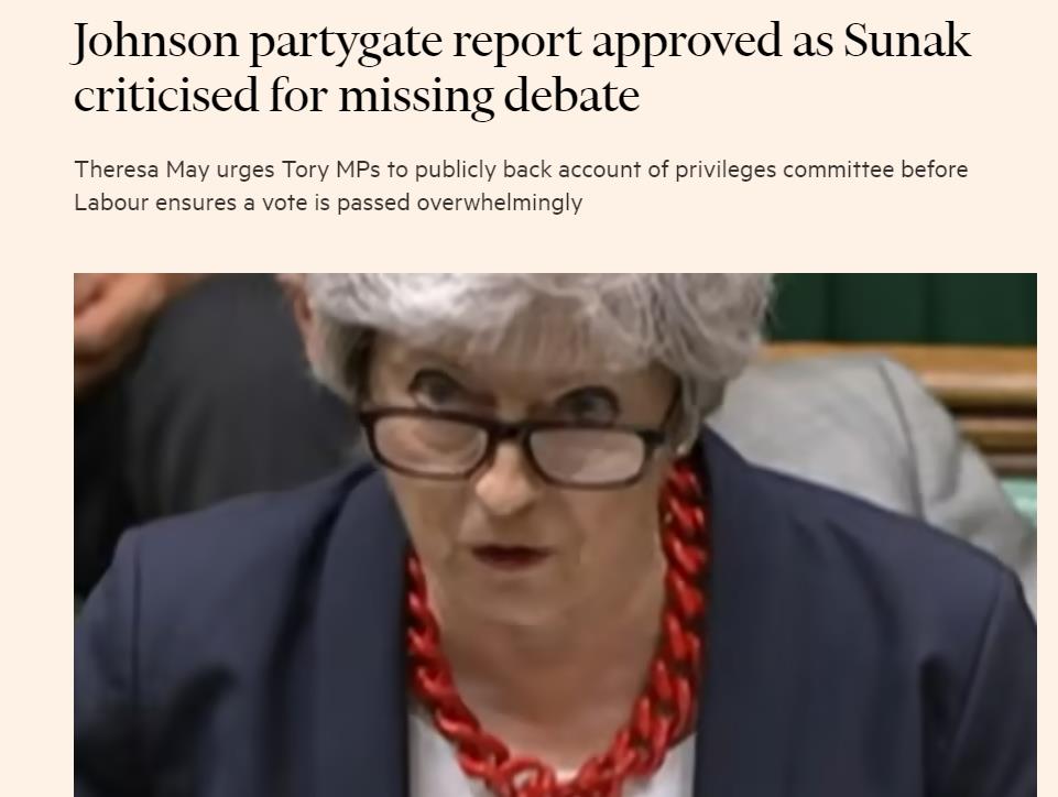 前首相特蕾莎·梅、下议院领袖佩妮·莫当特等保守党高级官员都投票支持该报告的调查结果。