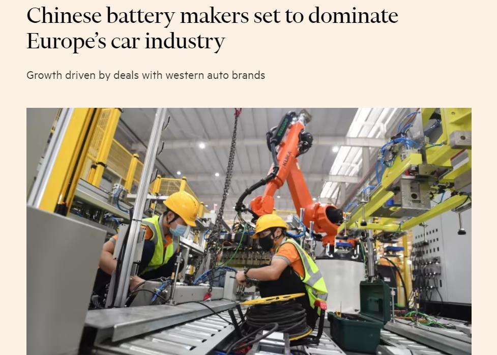 中国电池制造商主导着欧洲汽车行业,其工厂数量超过韩国和日本等任何其他国家。