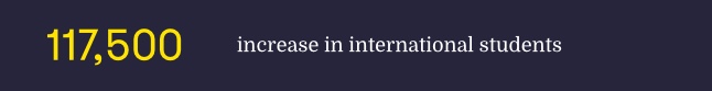 尽管英国脱欧后欧盟学生人数有所下降,但印度学生人数的大幅增长以及中国和其他地区学生人数的持续强劲强劲抵消了这一下降。