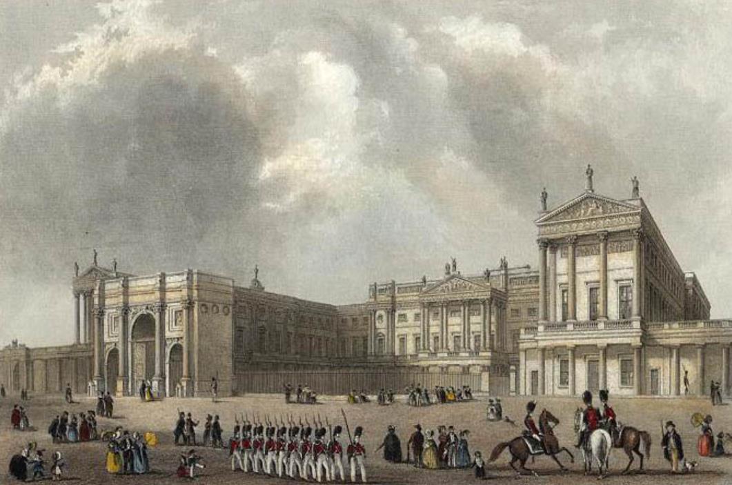 19世纪,著名建筑师约翰·纳什 (John Nash)和爱德华·布洛尔 (Edward Blore)对其进行了扩建,围绕中央庭院建造了三座侧翼。