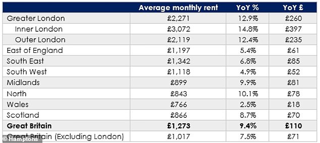2居室房产的租金年涨幅为10.9%,3居室房产的租金年涨幅为9.3%。其中,伦敦的租金上涨领先全国。