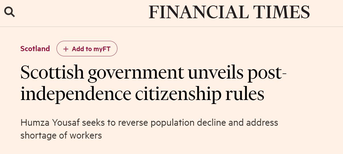苏格兰政府承诺,如果苏格兰获得独立,将通过一项新政策让移民用更少的钱,更容易获得公民身份,这将有助于缓解人口下降并解决工人短缺的问题。