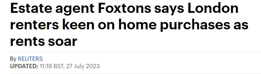 Foxtons的首席执行官Guy Gittins对此表示,目前租赁市场供需极度失衡,租金价格被不断推高。这意味着如果租房者们在伦敦市中心以外的大部分地区购买了普通的一居室或两居室公寓,他们每月的还款额也可能会低于他们支付的租金。”