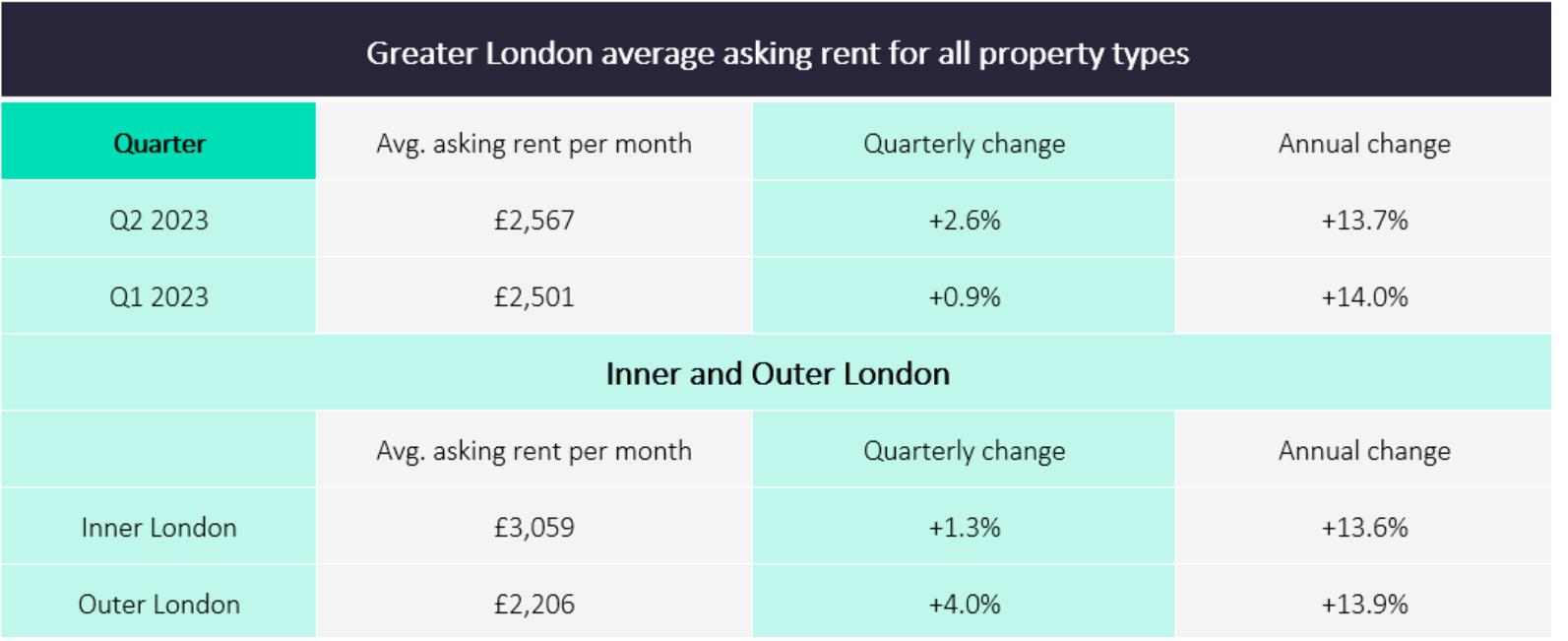 Rightmove的最新数据,截至今年第二季度,伦敦平均租金环比增长2.6%,同比增长13.7%,达到每月2,567英镑的历史新高。