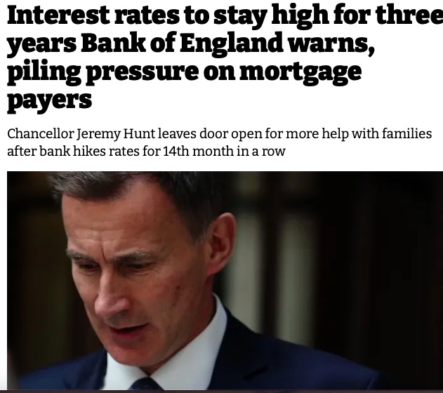 - 英国央行警告称:基准利率将在三年内保持在高位,这给贷款人带来了巨大压力。