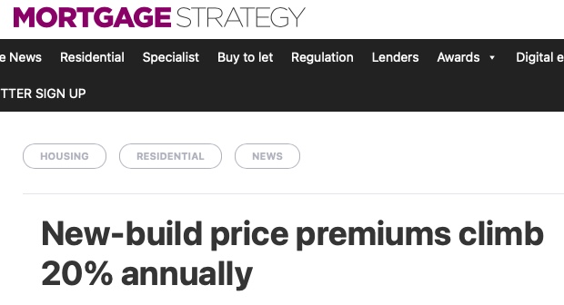 - 地产投资平台Sourced Franchise的数据显示:目前,英国新建房屋的平均价值为425,186英镑,较去年上涨20%。相比二手房,新建房明显涨幅更大。