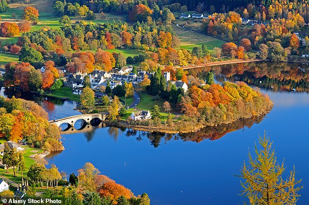 古堡所在的位置风景如画,位于佩斯郡高地的泰湖畔。