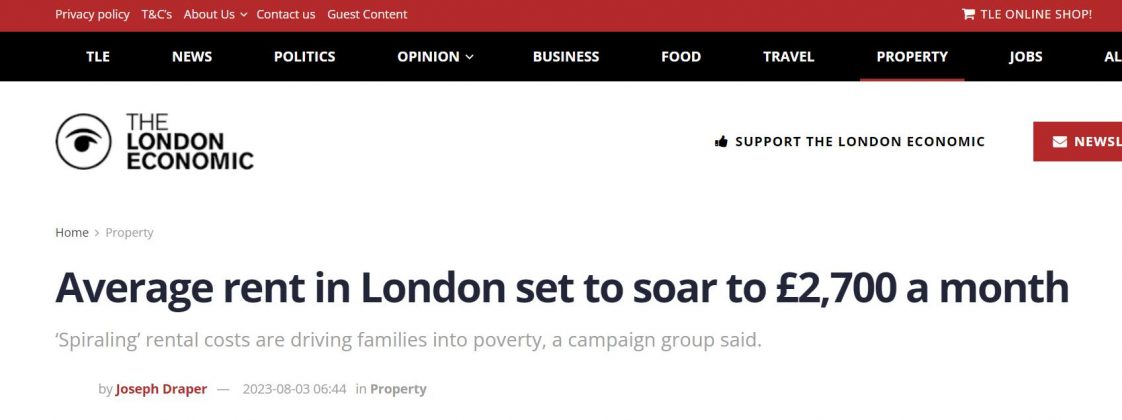 比如,像是伦敦这样的地区,由于租赁需求旺盛,伦敦市政府的官方预测认为,明年伦敦的平均租金成本可能飙升至每月2,700英镑。