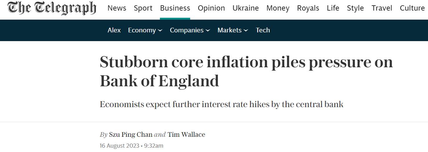 【核心通胀给英国央行继续带来压力】