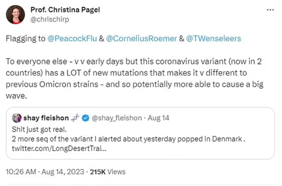 伦敦大学学院的数学家Christina Pagel教授也表示:“对于其他人来说——还处于非常早期的阶段,但这种变种(现在在两个国家)有很多新的突变,这使得它与其他国家之前的Omicron毒株有很大不同。”她还补充说,它“可能更能引起大的浪潮”。
