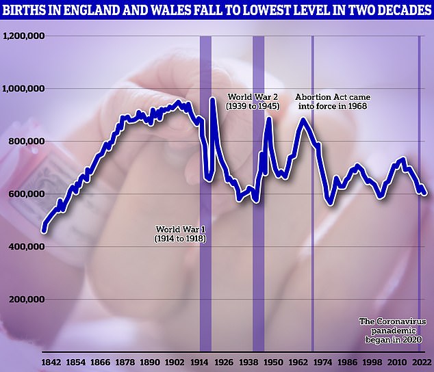 - 官方数据显示:2022年英格兰和威尔士的出生率降至20年来的最低水平。全年只有约60万婴儿出生,比2021年减少了3.1%。